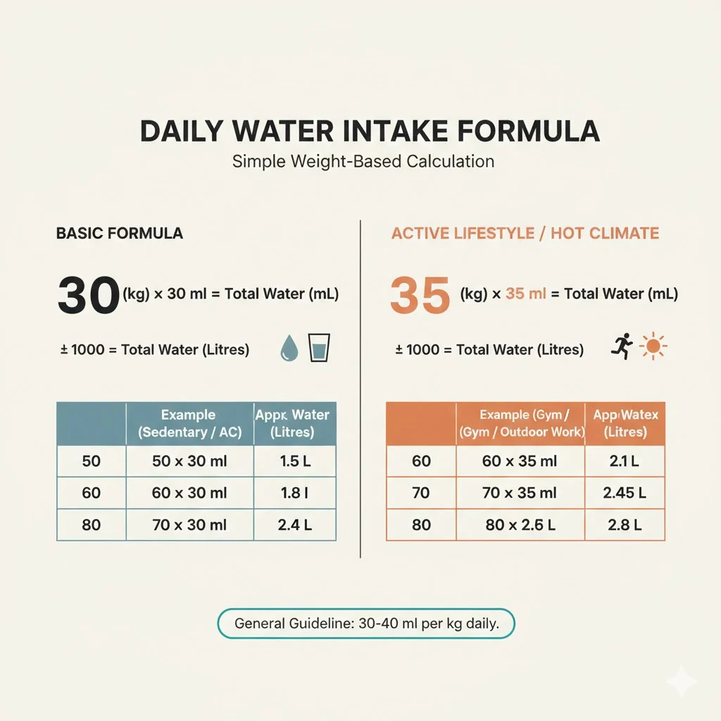 Recent saalon me doctors, nutrition experts aur health reports me 30 se 35 ml per kg body weight wala formula baar baar repeat ho raha hai. X par bhi log isi formula ko simple aur practical bata rahe hain. Aaj is article me pura confusion clear karte hain. No overhype. Sirf simple science.