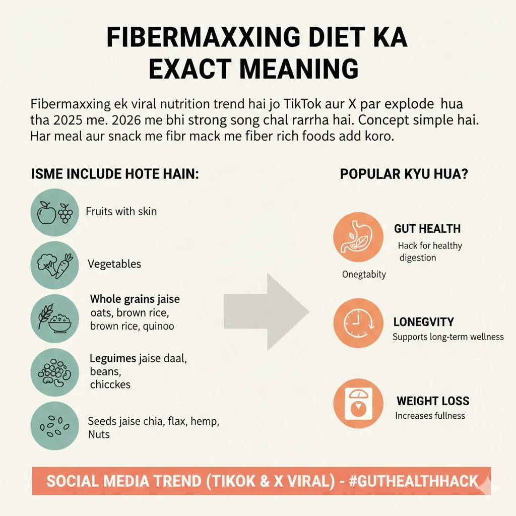 Fibermaxxing diet kya hota hai aur log is trend ko itna seriously kyun le rahe hain. Social media par 2025 se ek naya nutrition trend viral hua jise fibermaxxing bola ja raha hai. Iska simple matlab hai apne daily meals me fiber rich foods ko consciously increase karna.