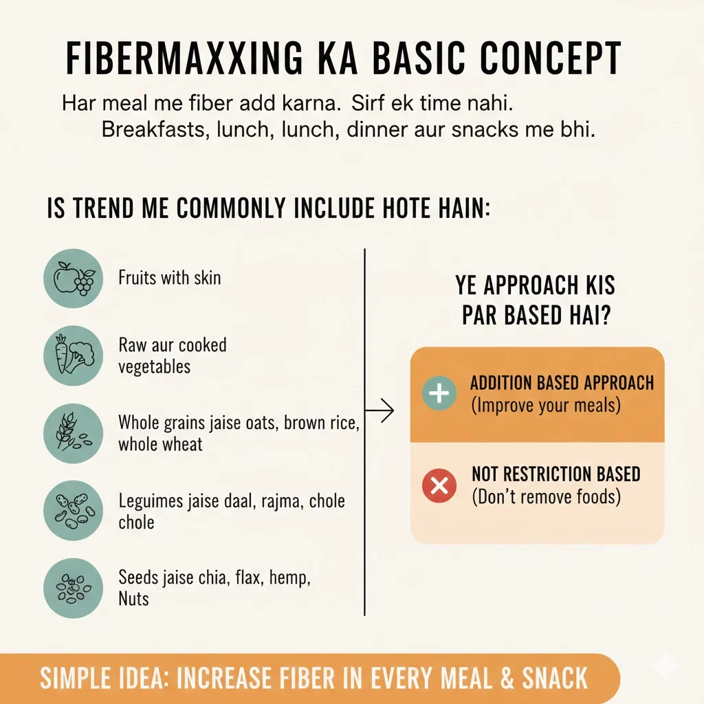 Fibermaxxing ka idea simple hai. Har meal me fiber add karna. Sirf ek time nahi. Breakfast, lunch, dinner aur snacks me bhi.